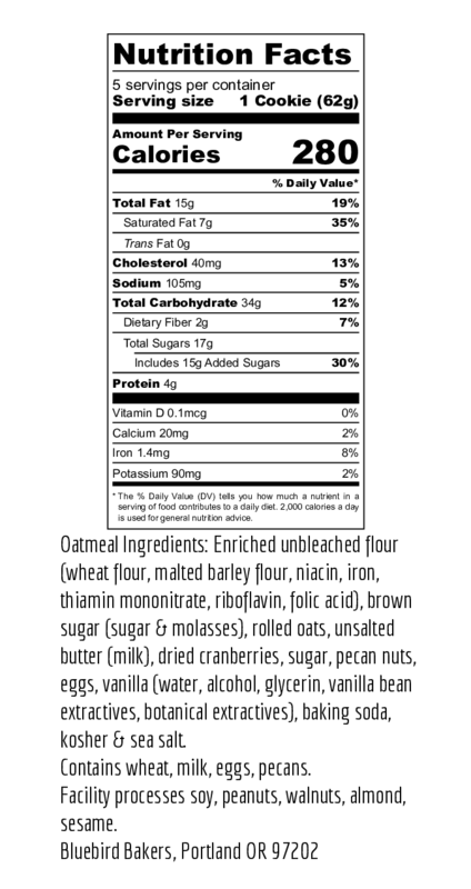 Experience the ultimate in oatmeal cookies with our Browned Butter Oatmeal delights. We start with Mother’s Choice Butter, expertly browned to perfection by Larsen’s Creamery in the Pacific Northwest, unlocking a rich, nutty flavor. Combined with wholesome Bob's Red Mill Oats, sweet-tart craisins, and crunchy toasted pecans, these cookies are elevated with a hint of Singing Dog Vanilla. Each bite offers a comforting, homemade taste that’s simply irresistible.